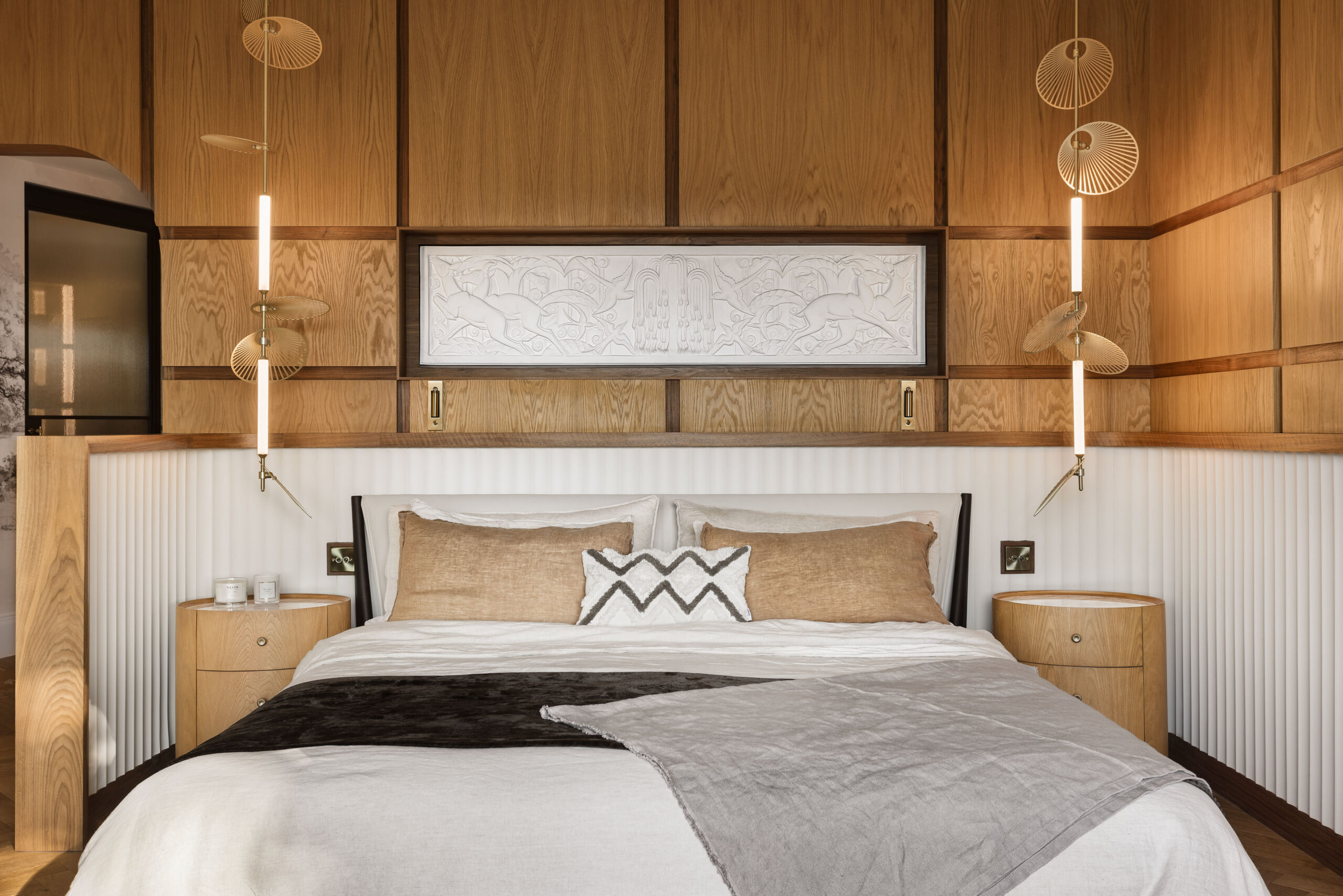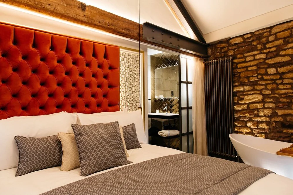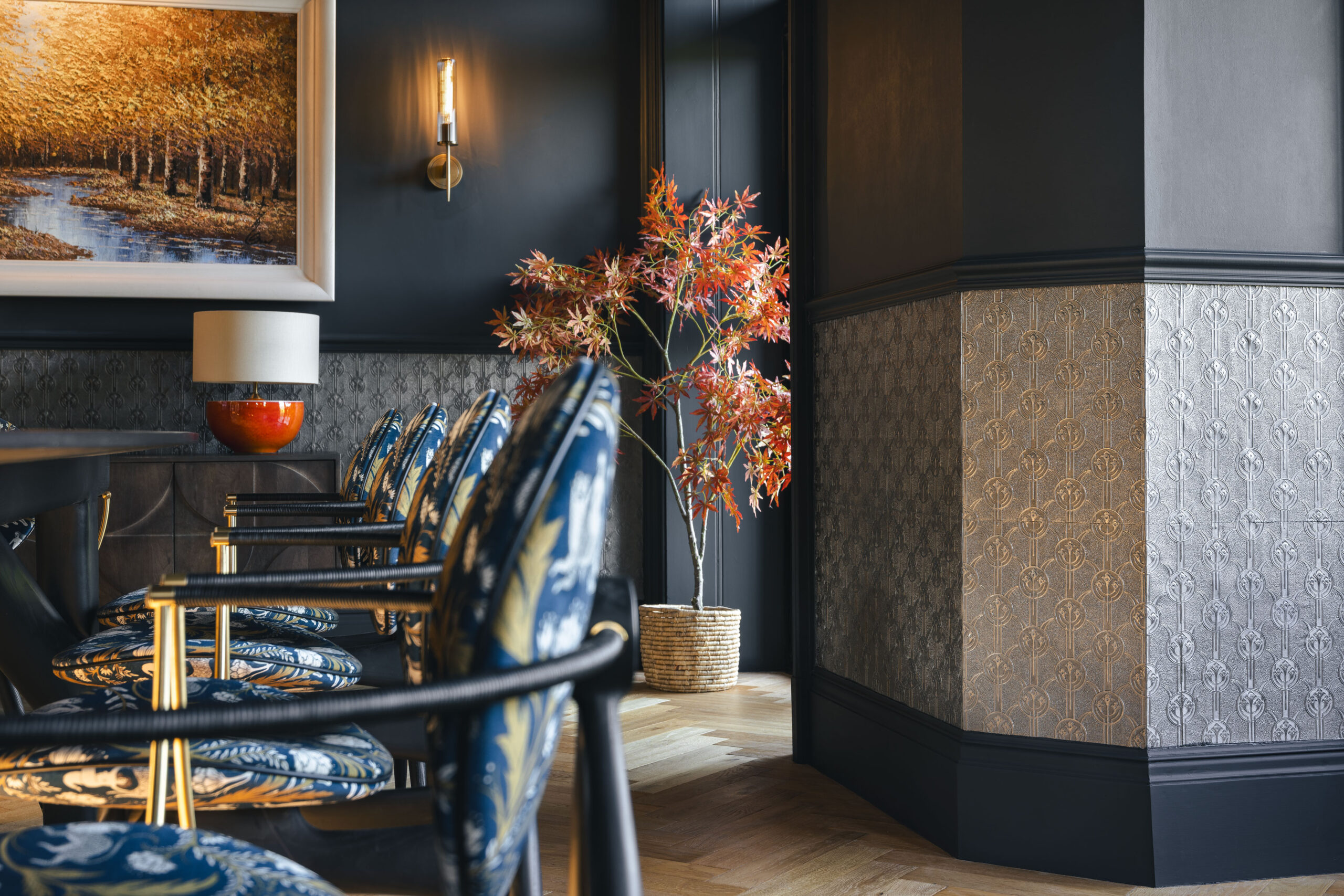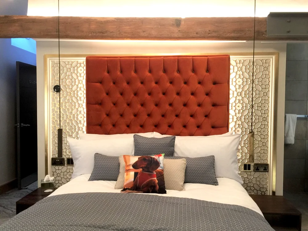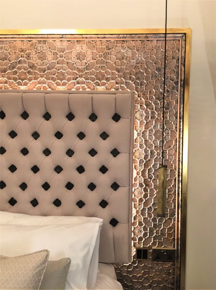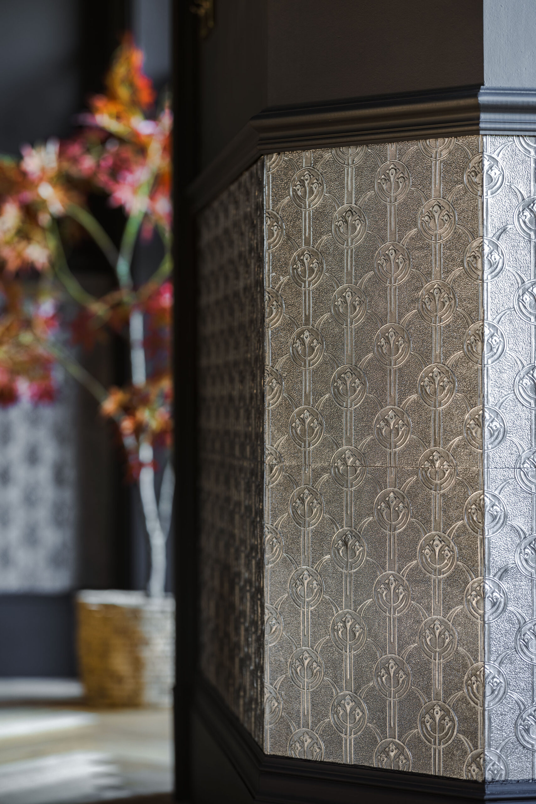Lincrusta Elizabeth was used for bespoke backdrops installed in 3 of 4 boutique bedrooms at Quite Simply French, a fine dining restaurant with rooms in Lancaster. See the gallery below, which includes a selection of other projects combining Lincrusta with Frank’s talent for decorative finishes.