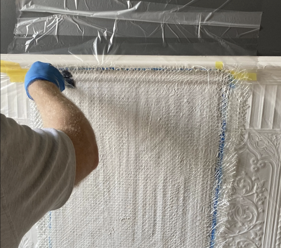 Frank making a mould of a Victorian Lincrusta dado design, originally installed c.1890.