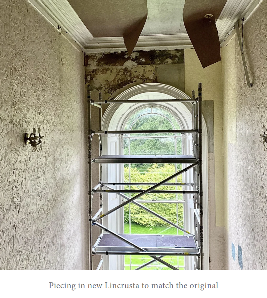 My clients, Ben and Paul of @The Country House Diaries, Cumbria were featured. I, as an Approved Lincrusta Installer & Restorer, was called in to make repairs to the water damaged original Lincrusta (Italian Renaissance design) on the stairs and landing of their Georgian Country House. (I didn’t appear in the programme itself.)