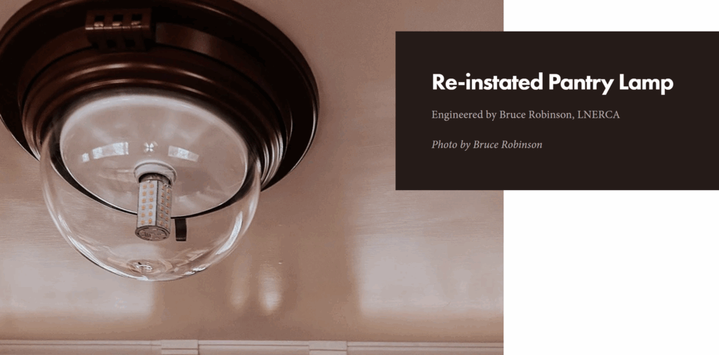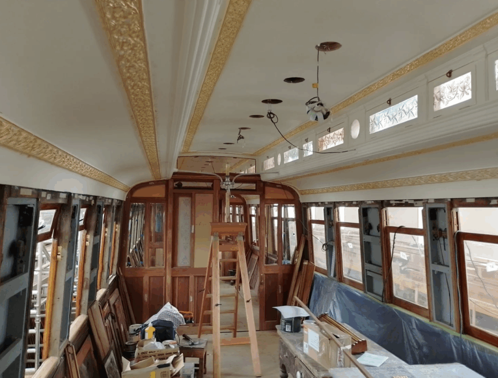 We have continued to follow the restoration journey of 189. Bruce Robinson was asked to help with remanufacturing lighting fixtures – a challenge with only the original black and white photograph as a reference!